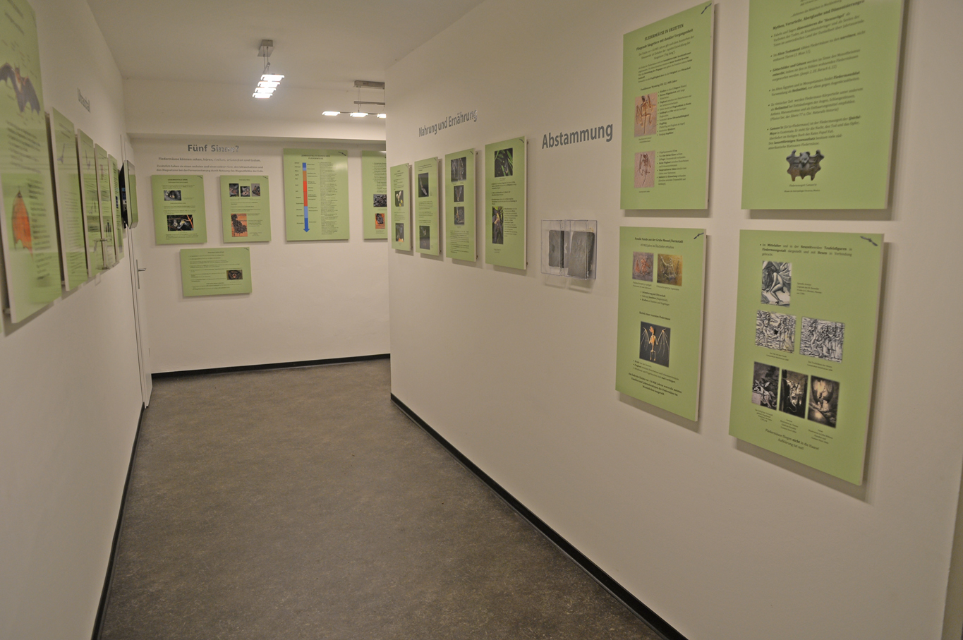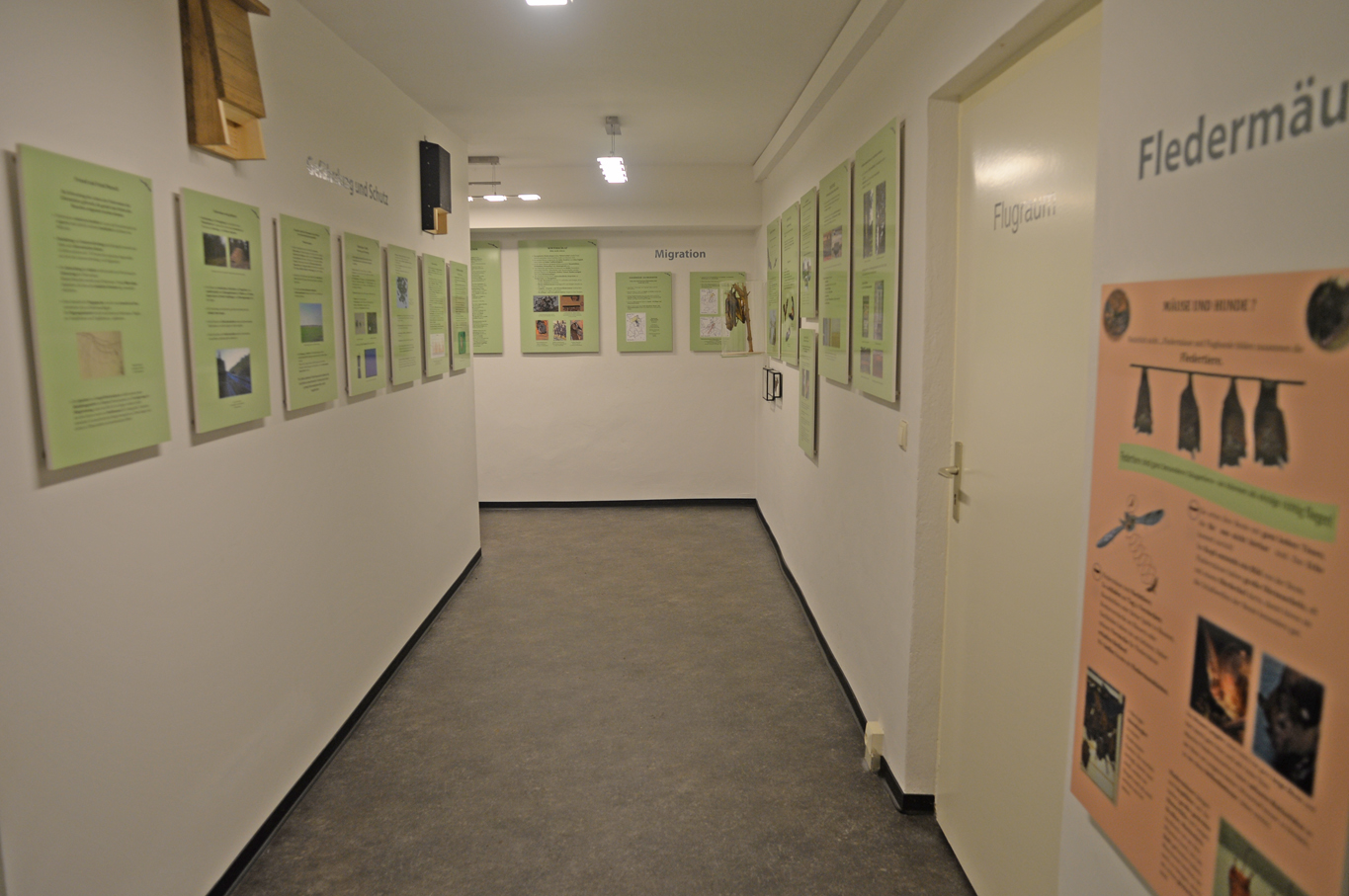 Auf über 30 Schautafeln werden Sie über einheimische und exotische Fledertiere umfassend informiert. Vor dem Hintergrund langjähriger Erfahrungen im ehrenamtlichen Fledermausschutz kann der Inhaber der Pension, Herr Werner Oldenburg, aus dem Füllhorn seiner Kenntnisse über die faszinierenden Tiere detailliert und interessant berichten. Der Besucher erfährt unter anderem, welche Schutzmaßnahmen für unsere einheimischen Arten möglich und machbar sind und welche Bedeutung Fledermäuse in unserem Leben haben.