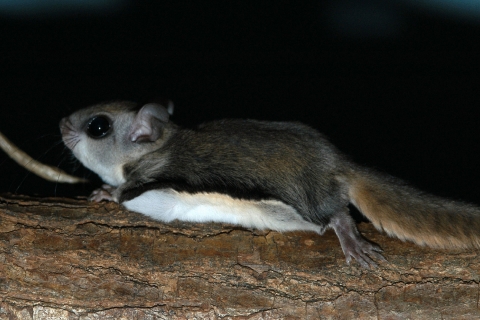 In einer weiteren Voliere zeigen wir amerikanische Zwerggleithörnchen (Glaucomys volans). Der Unterschied zwischen den einzig aktiv fliegenden Säugetieren, den Fledermäusen, und den passiv fliegenden (gleitenden) Säugetieren, den Gleithörnchen, wird damit veranschaulicht.