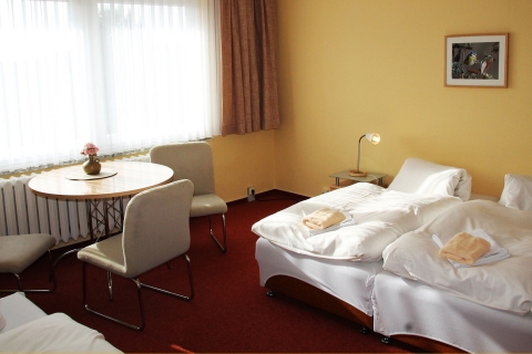 Die vorhandenen Dreibettzimmer eignen sich besonders für Familien mit Kind. Auch sie sind mit Dusche & WC ausgestattet. Alle Dreibettzimmer haben einen Sat TV Anschluß.